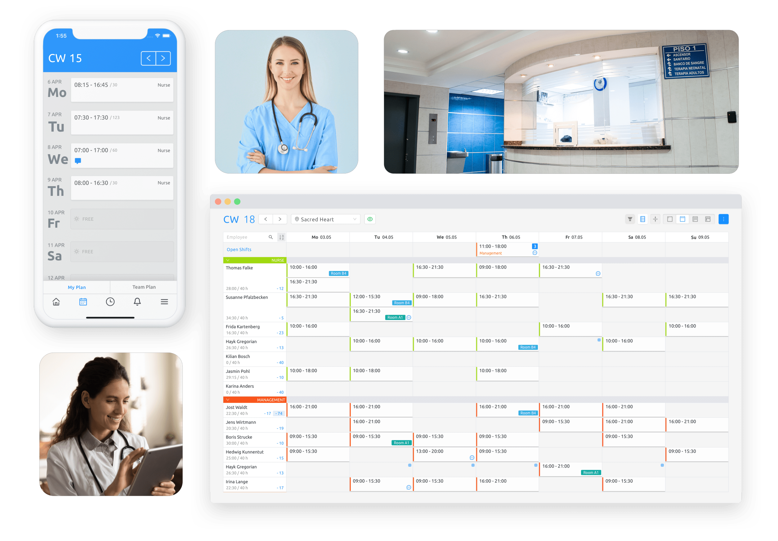 Use the punch clock station in your clinic for effective time tracking. Easily let employees clock in and out of shifts using a personal PIN code. Aplano automatically collects the data and calculates overtime in the hour accounts.